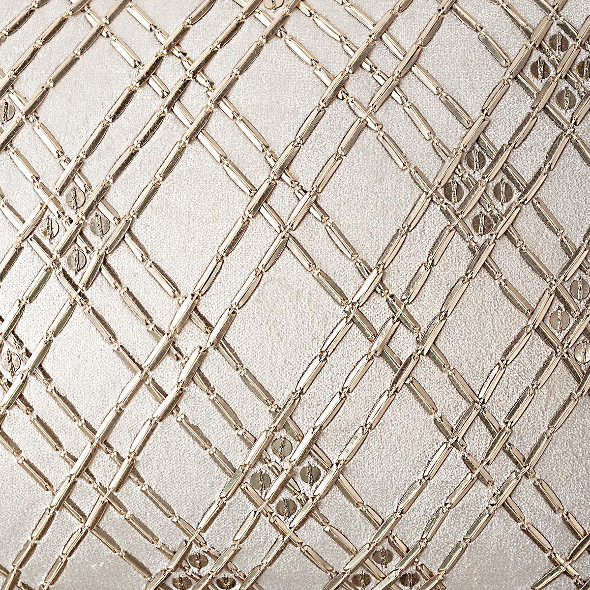 - The design is subtly embroidered in a contrasting warm tone, likely gold or bronze, on a light, neutral fabric, suggesting a plush material like velvet or a fine weave.