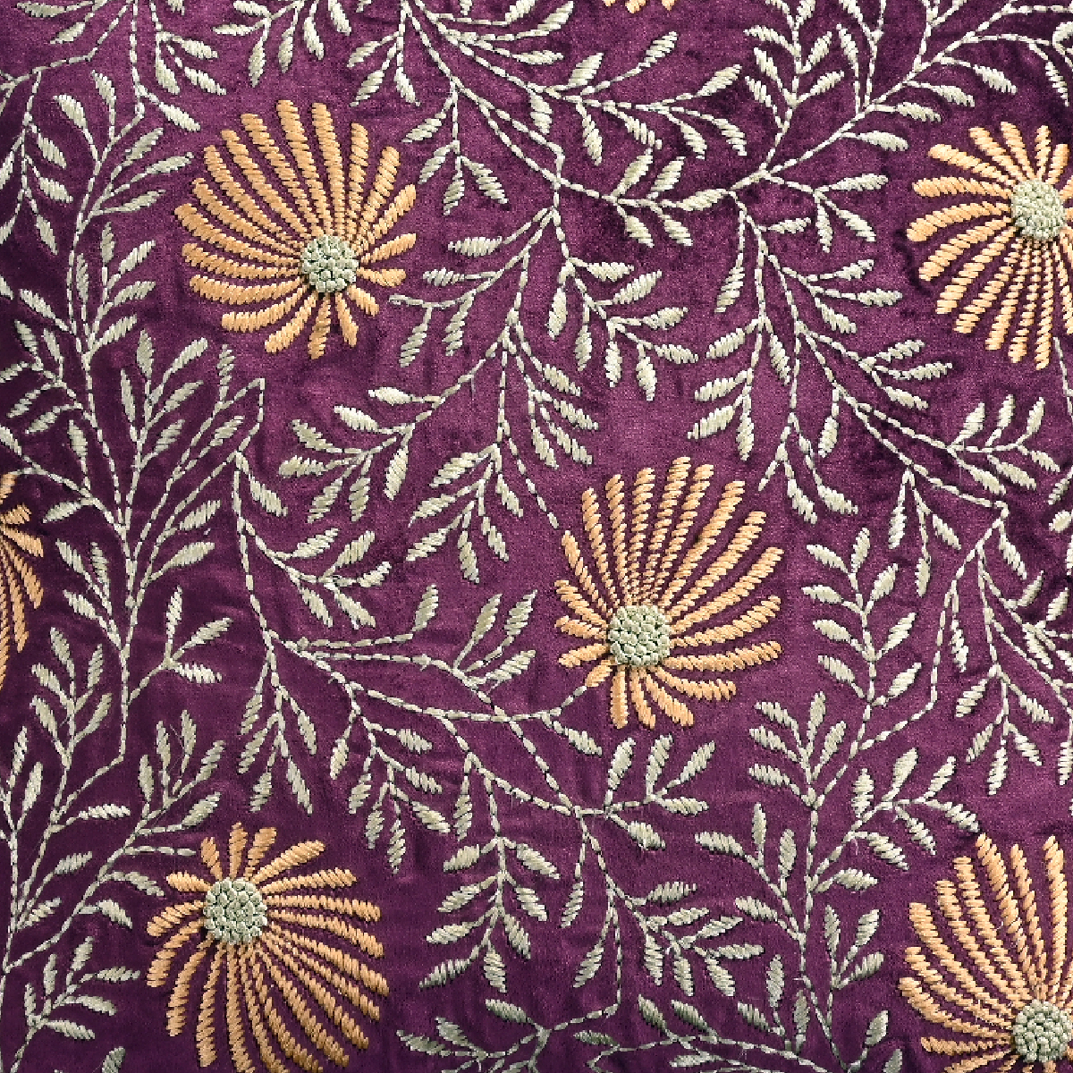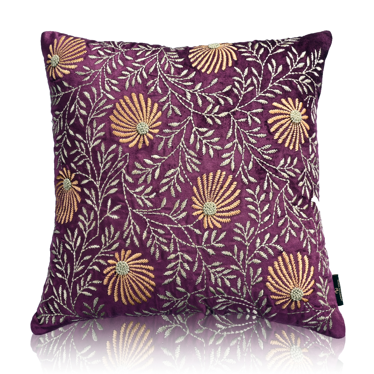 • Intricately embroidered cushion cover in rich royal purple adds a regal charm to any setting.