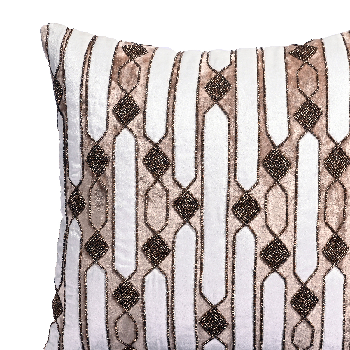 - Showcasing contemporary geometric patterns, our lattice cushion cover in beige and white is a real stunner.