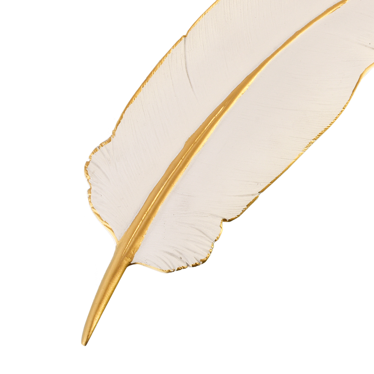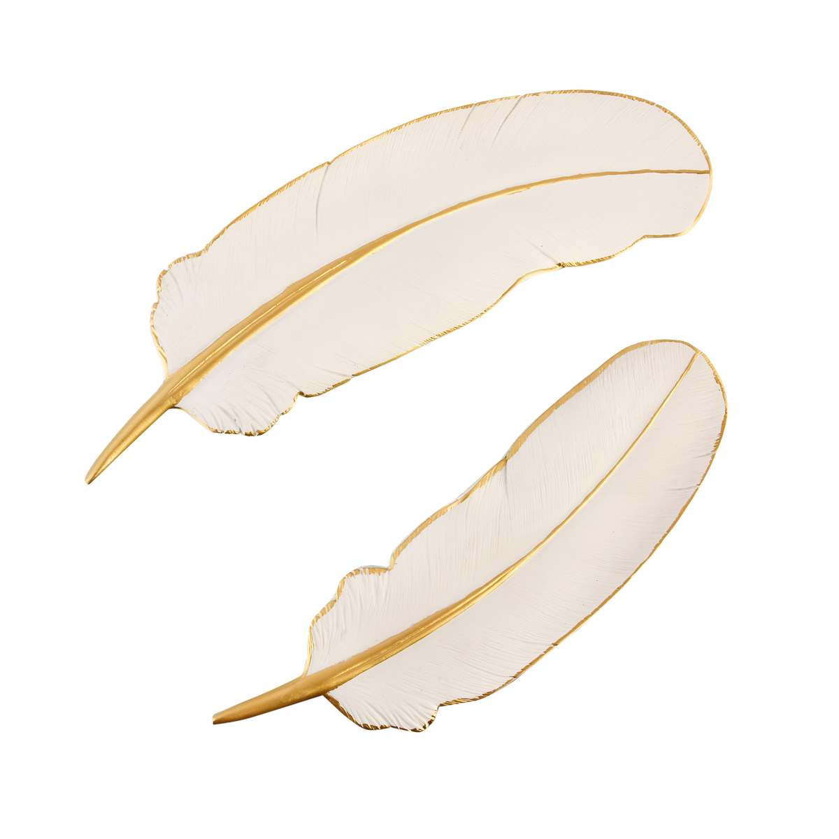 - The BIRD FEATHER (L) Wall Décor embodies elegance and serenity, capturing the delicate essence of a bird’s plume in a stunning white and gold-plated finish.