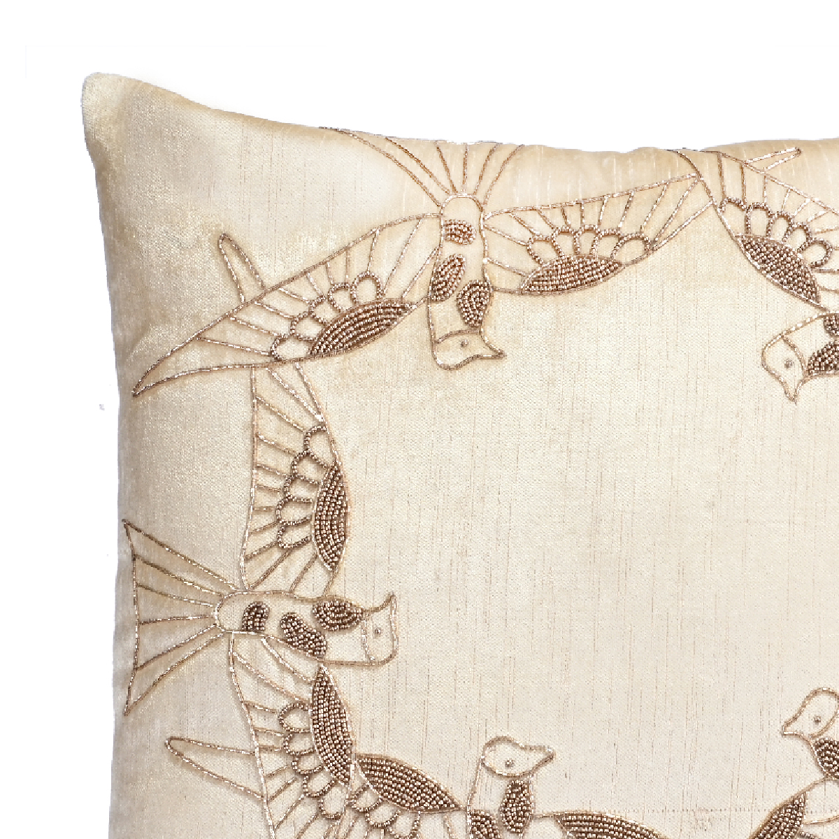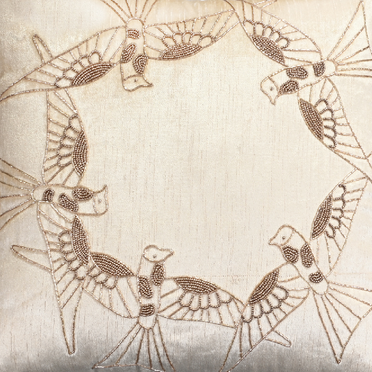 • These birds represent the mighty Simorgh who unity and produced a powerful energy capable of transforming the world for the better.Enrich your home interior by adding these unique birds that have been hand embroidered in gold cotton viscose velvet decorative cushions to the living and bedroom.